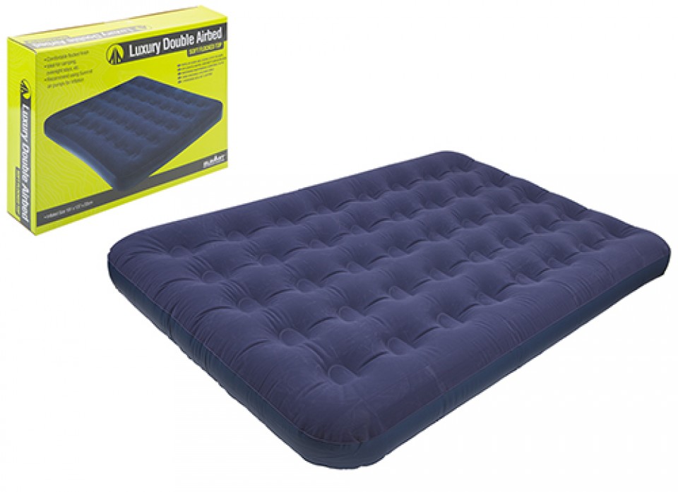 This luxury double air bed mattress is made from a lightweight PVC material, with a soft feel flocked topping to make them more comfortable to sleep on. The mattress is easy to inflate and deflate and is compatible with all Summit air pumps and comes with a repair patch for emergencies. The air bed is ideal for camping, festivals or to have at home as a spare bed for guests.
