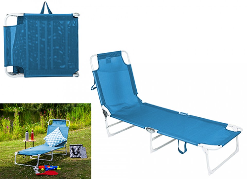 Strong steel frame, this sturdy sun bed features several reclining positions and carry handles.