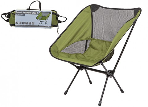The Summit Forest green Pack Away Chair showcases an innovative design that allows it to collapse down to a tenth of the size of conventional folding chairs. When packed into its carry case, it measures a mere 36cm(L)x 14(W)x 12cm(D) and will fit comfortably into your travel bag and will not weigh you down.