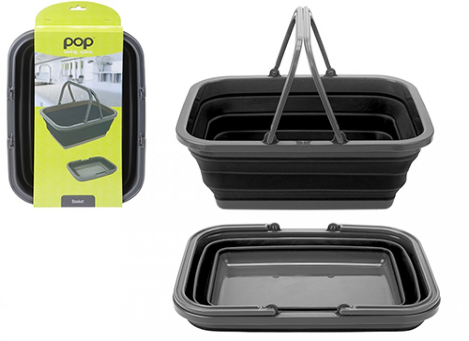 This stylish black POP! basket is great for many uses, such as a washing bowl when camping, use for storing cleaning products or use as a shopping basket. Made from flexible easy clean materials, the side panels simply compact down into the base to reduce the size to a mere 5cm, saving valuable storage space.