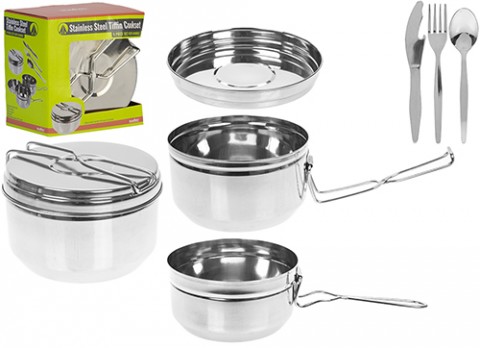 This strong but stylish tiffin tin is sturdy and compact, yet it is well suited to meet the challenges of the modern kitchen. With a handle for convenient carrying, it is ideal for picnics or lunches.