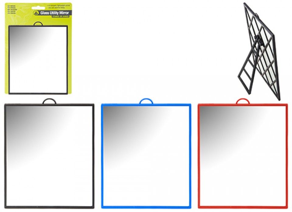 make sure you always camp in style with the compact, portable travel mirror. A handy utility mirror that is surrounded by a reinforced plastic body for safe transportation. It features both a stand and a hook to enable you to either hang it up or have it free standing, making it perfect for travel.