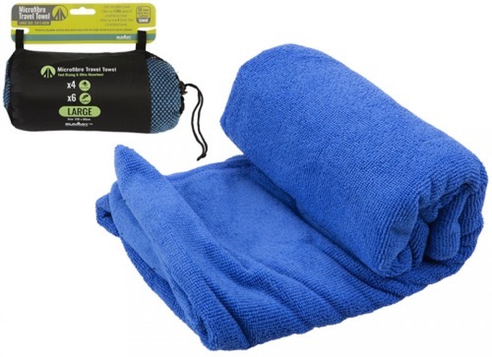 Our microfibre towels are highly efficient at removing moisture and water from the skin. Six times lighter than a standard towel, it dries four times faster making it perfect for sports, camping and swimming. Supplied in a mesh bag for easy carry and transportation.