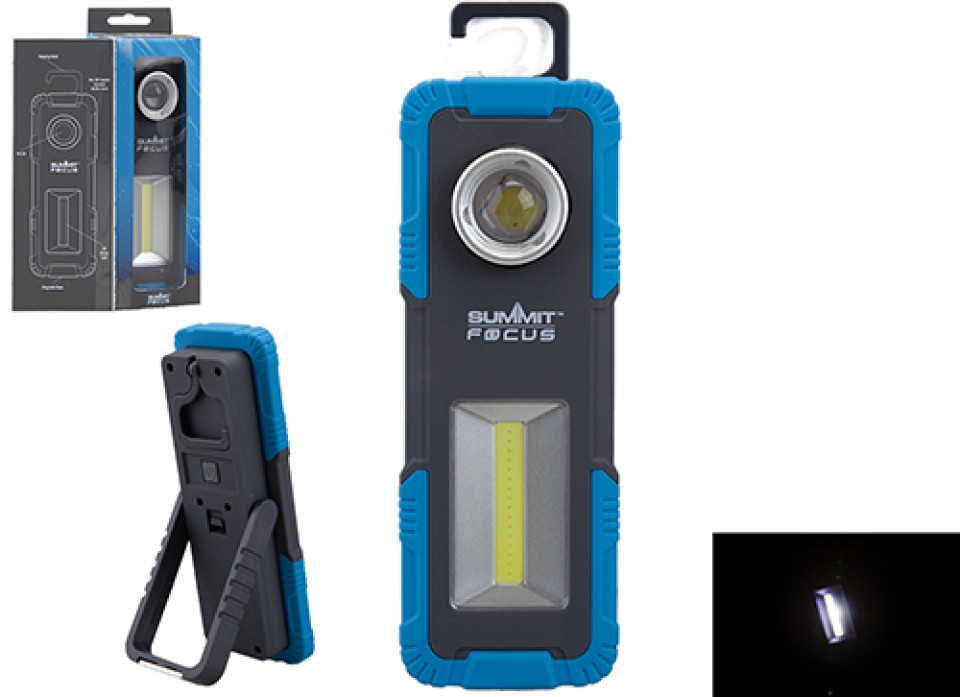 Summit focus beam and light. Soft rubber material casing with a dimmable cob light. Strong magnets on the base of the stand for extra stability.